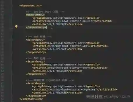 首先,示例工程使用Maven管理,这里首先定义了Spring Boot的依赖。Spring Boot是集成了Spring框架的开发套件,它将帮助开发者更快地开发Spring Web的应用。同时在依赖中还可以看到Web依赖、AOP依赖以及模板引擎Thymeleaf的依赖。
