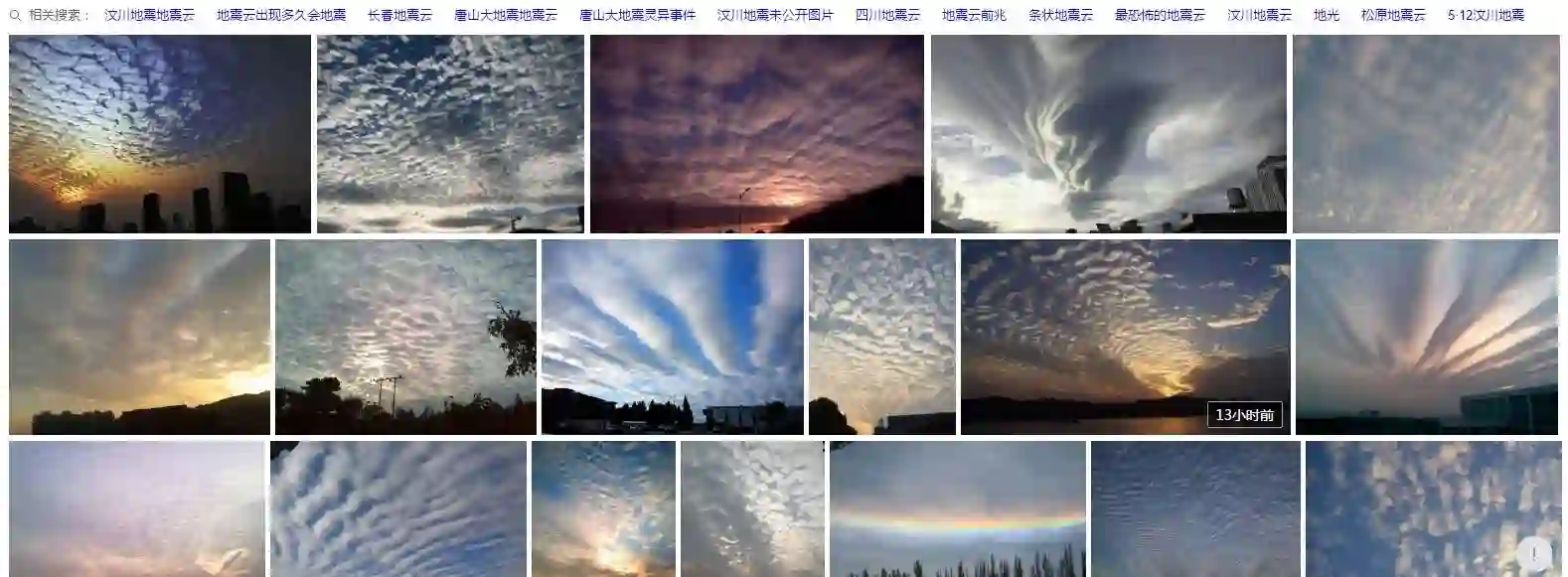 ▲ 百度一下地震云,可以出来各种姿态的云,可以说是包罗万象了