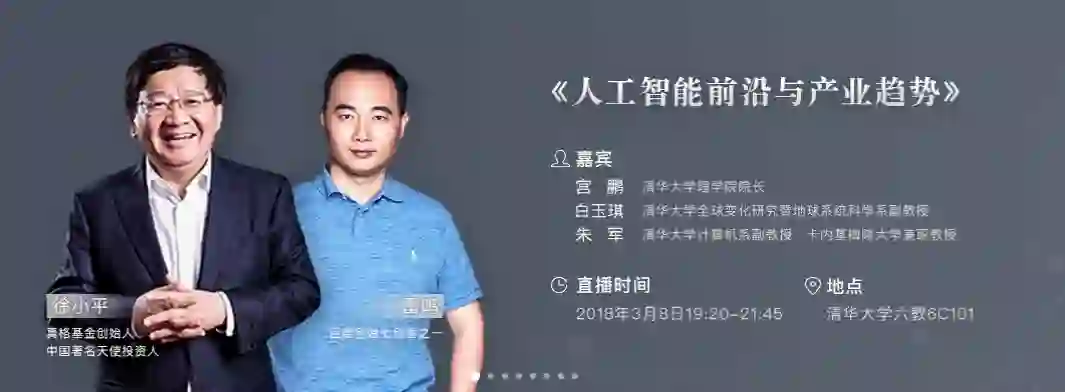 【新智元导读】3月8日,清华大学《人工智能前沿与产业趋势》系列课程第一讲开课。本讲将由真格基金创始人、新东方联合创始人徐小平老师亲临现场,与清华海峡研究院大数据AI生态专委会专家委员、百度七剑客之一、酷我音乐创始人雷鸣老师共同参与,深度探讨人工智能时代创业和投资的趋势与机遇。