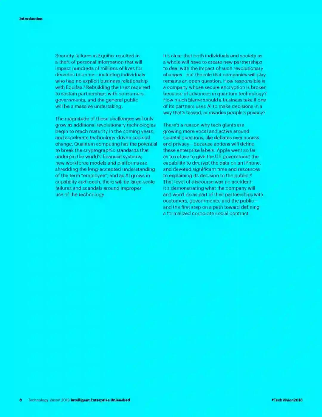 埃森哲近日发布了新报告“2018年科技愿景”,分析了五大技术趋势让企业能够挖掘潜力,创造新的商业机会并帮助改变我们所知道的世界。