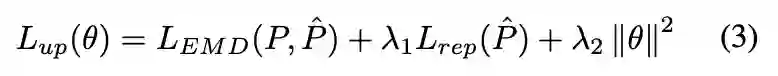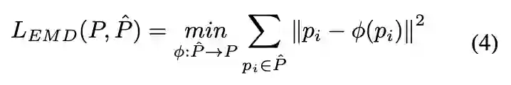 其中第一个项是上采样点集和 groundtruth 密集点云之间的地球移动距离 EMD(Earth Mover Distance):