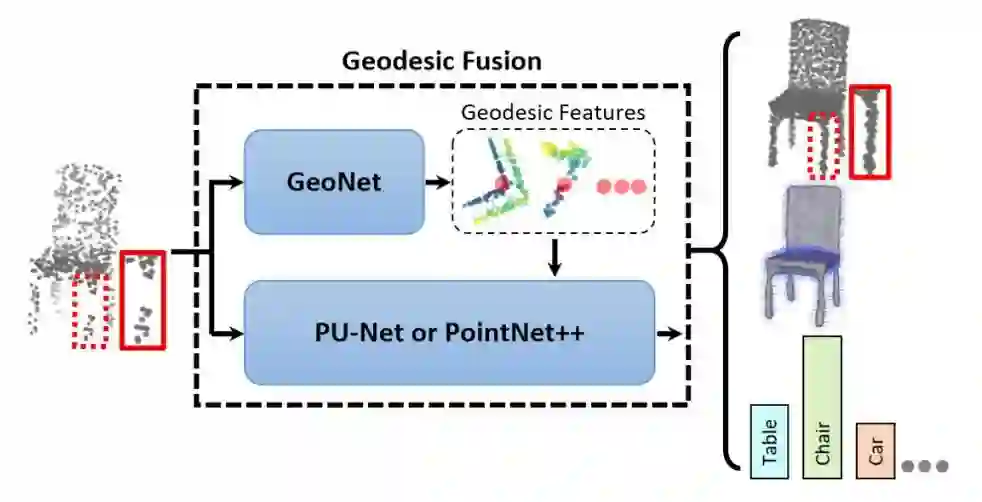 本文提出 GeoNet,一种全新的深度学习架构,可学习点云基于测地空间的拓扑学结构。其训练过程在 groundtruth 测地距离的监督之下进行,因此已学习的表示可反映出点云所潜在表征的网格曲面特征。