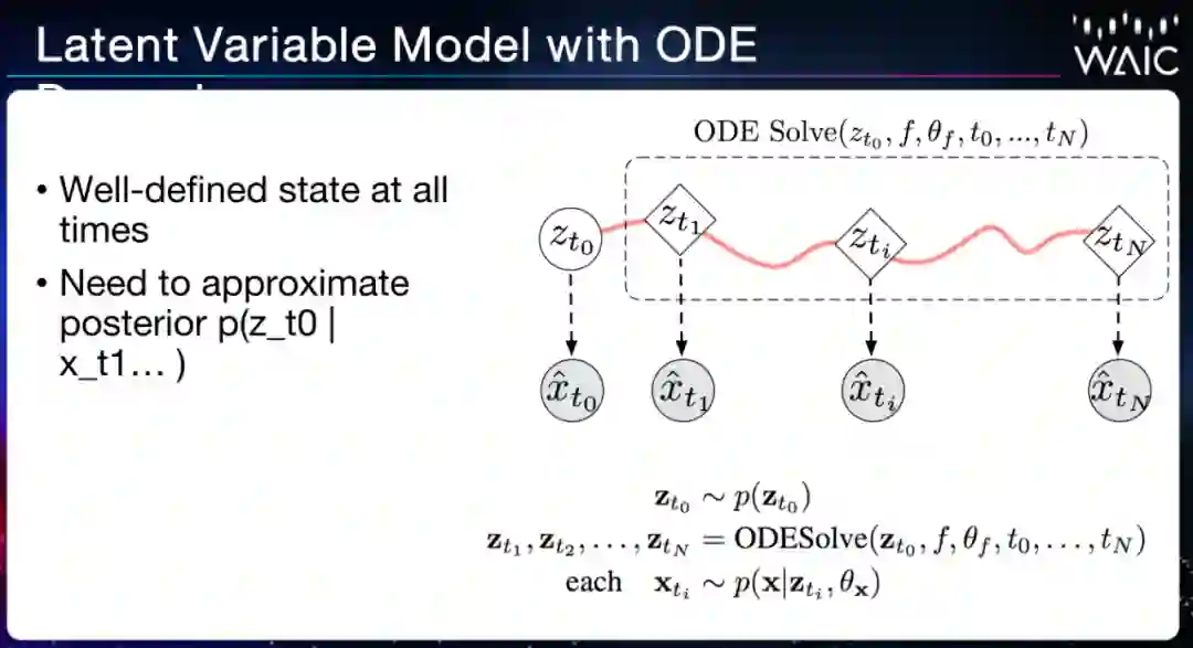 David Duvenaud 介绍了 ODE-RNN,以及另一种更复杂的处理时间序列数据方式——隐变量模型。