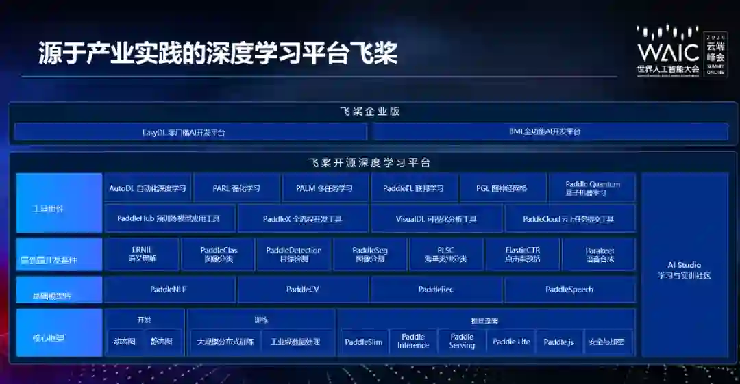 而这个平台的基础底座就是百度的飞桨深度学习平台。飞桨为 AI 应用生产提供了核心框架、工具组件、服务平台等全方位的支撑。为满足企业需求开发的飞桨企业版可以提供更全面和强大的功能,更易用的可视化界面,预知更丰富的场景模型,提供更强化的安全权限管理。