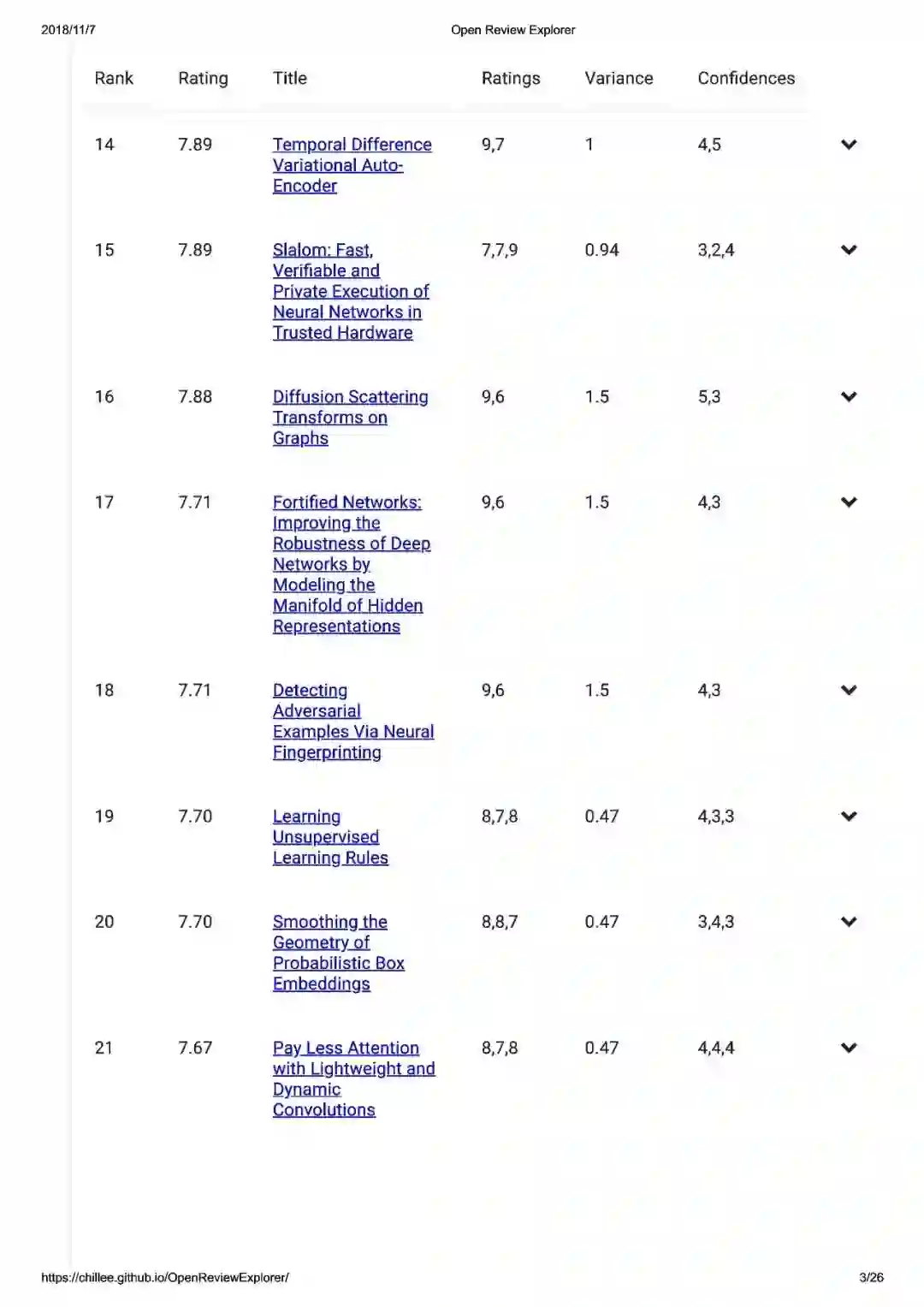 【导读】ICLR,全称为「International Conference on Learning Representations」(国际学习表征会议),2013 年才刚刚成立了第一届。这个一年一度的会议虽然今年2018年办到第七届,但已经被学术研究者们广泛认可,被认为「深度学习的顶级会议」。这个会议由位列深度学习三大巨头之二的 Yoshua Bengio 和 Yann LeCun 牵头创办。Yoshua Bengio 是蒙特利尔大学教授,深度学习三巨头之一,他领导蒙特利尔大学的人工智能实验室(MILA)进行 AI 技术的学术研究。MILA 是世界上最大的人工智能研究中心之一,与谷歌也有着密切的合作。 Yann LeCun 就自不用提,同为深度学习三巨头之一的他现任 Facebook 人工智能研究院(FAIR)院长、纽约大学教授。作为卷积神经网络之父,他为深度学习的发展和创新作出了重要贡献。