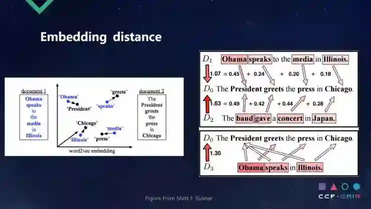 刚才提到词移距离的方法,这个方法就是 WMD,基于加权平均的方法比较简单,这里主要讲一下 WMD。我们投射的每个词都要算距离,需要找到与这个词最像的那个词,而不是简单地把这个词和所有词加权平均以后才会扩散。