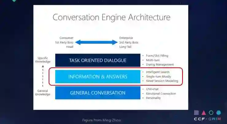 下面这张图是微软周明老师的一张图,也是我非常赞同的一种分类。我们在业界打造通用智能问答平台的时候要解决如下几种问答类型: