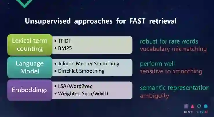 此后,他阐述了目前业界较为通用的快速召回方案:第一种,基于词汇计数(Lexical term counting)的方法;第二种,基于语言模型的方法;第三种,基于向量化的方法。