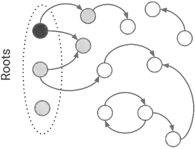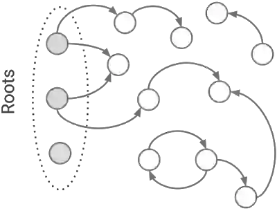 标记是 V8 Mark-Compact GC 工作的一个阶段。在这个阶段中,收集器发现并标记所有活动对象。标记从一组已知的活动对象开始,如全局对象和激活函数,即所谓的 roots,收集器将 roots 标记为活动的对象,并顺着指针去寻找发现更多的活动对象。收集器继续标记新发现的对象并跟随指针移动,直到没有发现更多的对象要标记为止。在标记结束时,所有无法让应用程序访问的未标记对象,都可以安全地回收。