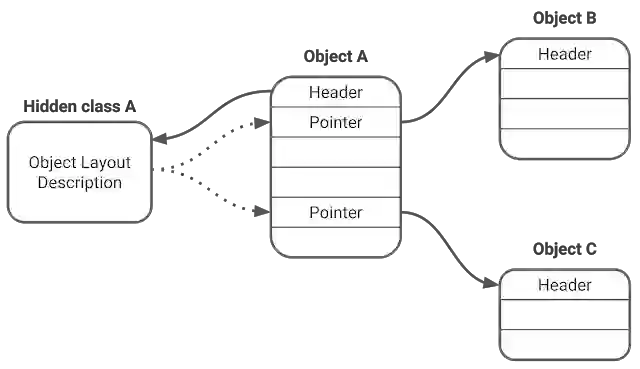 对象的字段可以存储三种值:标记的指针、标记的小整数(也称为 Smi),或未标记的值(如拆箱的浮点数)。