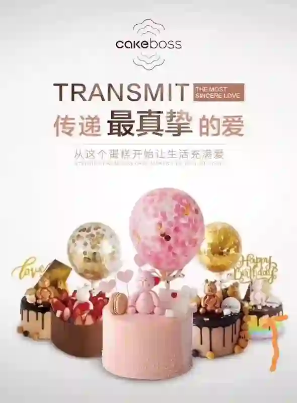 蛋糕造型上,CakeBoss团队研发了自己的品牌IP——翻糖公仔小熊,以此开发了一系列精美蛋糕造型,例如告白气球系列,以气球和爱心小熊为标识,保证造型精美高端的同时又将客单价做到了二三百左右,深受顾客喜爱。利用翻糖小熊作为品牌IP,既方便大批量制作提升效率,又能降低生产成本,另一方面还保证了设计美感,可谓一举三得。