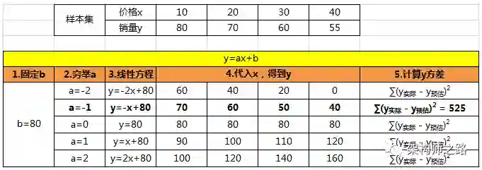 商家卖鞋,可利用历史上每个季度鞋的定价x与销量y,来预估“定价与销量的关系”(y=ax+b),以辅助对鞋子进行最佳定价。