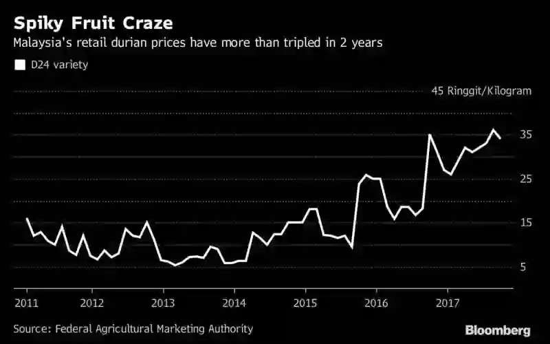 马来西亚的榴莲零售价在两年内增长了两倍多