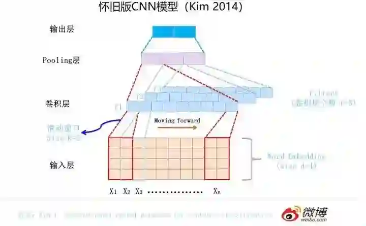 这就是最早应用在 NLP 领域 CNN 模型的工作机制,用来解决 NLP 中的句子分类任务,看起来还是很简洁的,之后陆续出现了在此基础上的改进模型。这些怀旧版 CNN 模型在一些任务上也能和当时怀旧版本的 RNN 模型效果相当,所以在 NLP 若干领域也能野蛮生长,但是在更多的 NLP 领域,还是处于被 RNN 模型压制到抑郁症早期的尴尬局面。那为什么在图像领域打遍天下无敌手的 CNN,一旦跑到 NLP 的地盘,就被 RNN 这个地头蛇压制得无颜见图像领域江东父老呢?这说明这个版本的 CNN 还是有很多问题的,其实最根本的症结所在还是老革命遇到了新问题,主要是到了新环境没有针对新环境的特性做出针对性的改变,所以面临水土不服的问题。