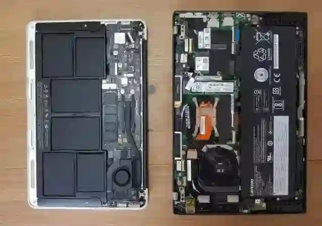 11 吋 MacBook Air 和 2017 款 ThinkPad X1 Carbon 拆机对比。