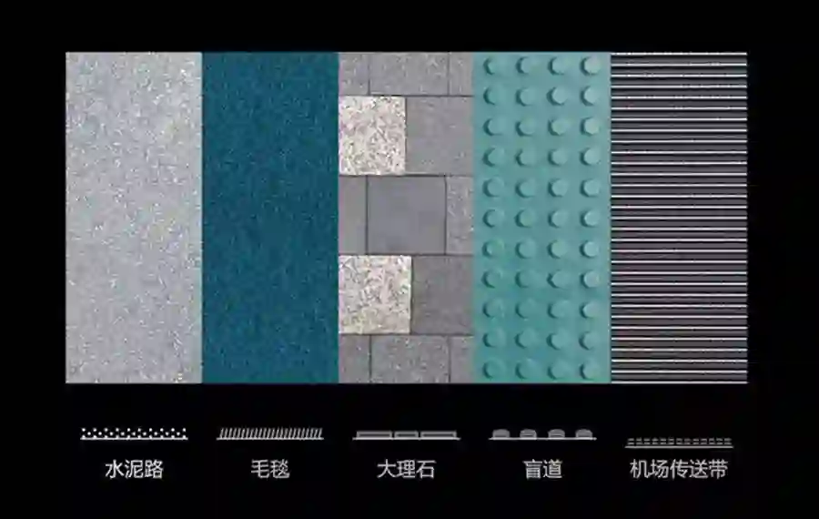 盲道、水泥路、大理石、机场传送带、