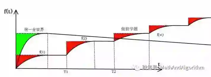 总之,从开始到结束,按照时间把这个心理升差积分起来的绿色部分面积,就是下面这个式子: