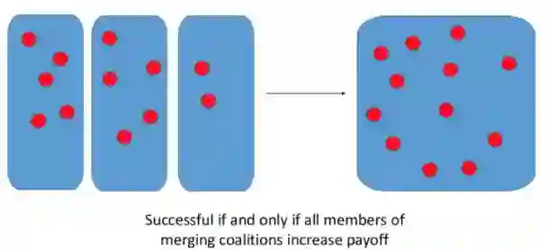 某些目标不能单独实现(比如抬起重物)。因此,智能体可能会同意组成一组智能体,称为联盟(coalition),来实现共同目标。
