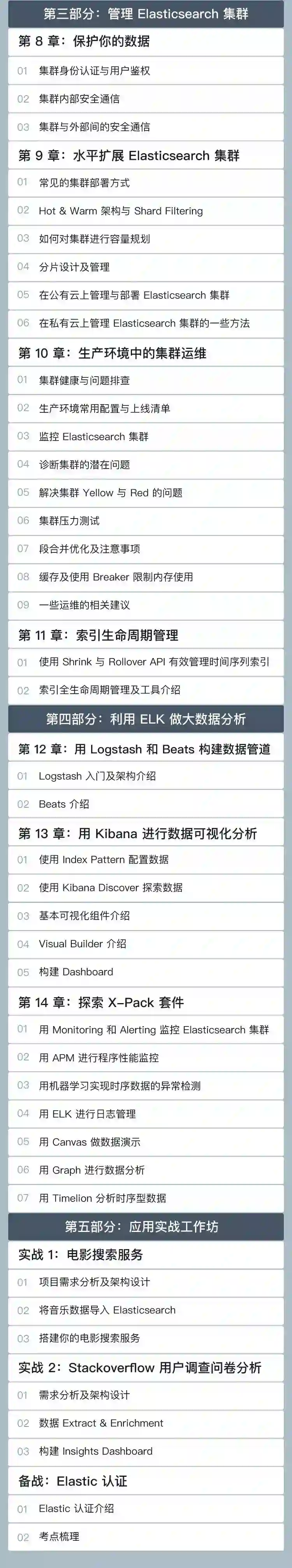 理解 Elasticsearch 分布式架构的原理;相关性算分的原理;数据建模的最佳实践;深入搜索及聚合功能以提高搜索结果的相关度。