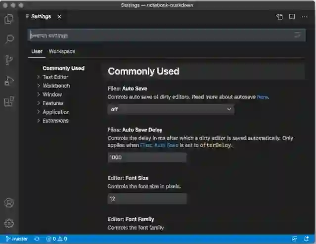 从上图可以看到,在新的交互模型中,与设置列表的交互就像与 VS Code 中的任何其他列表进行交互。获取搜索栏的焦点后,可以按向下箭头将焦点切换至下一行的设置条目。然后可以使用箭头键在设置列表中移动焦点。要编辑设置,在选中的设置条目中按下 Enter 键即可。