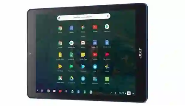 宏碁Chromebook Tab 10运行全功能的Chrome操作系统,屏幕底部有一个Dock,Dock上有一些工具,可快速创建笔记,截图和放大等。