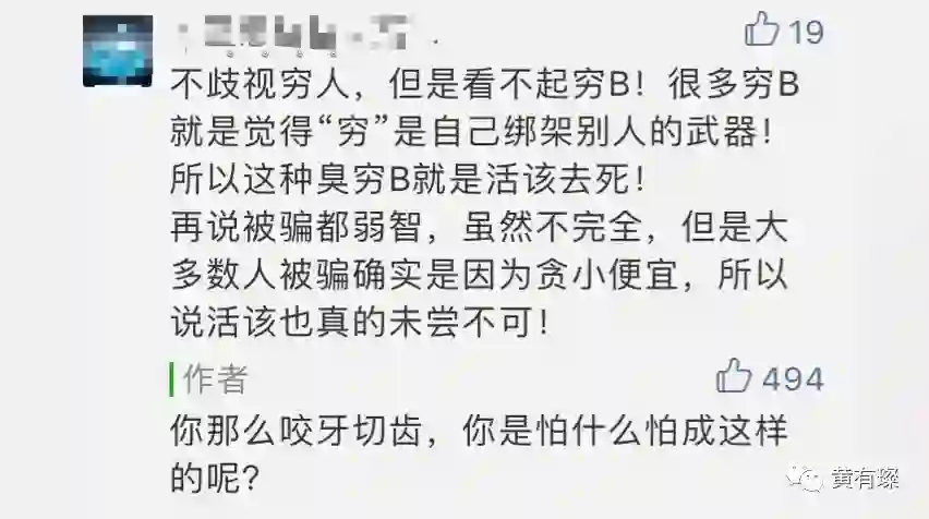 我看了都觉得这人是不是受什么刺激了,文字都能表现出那么咬牙切齿,恶狠狠地姿态。满满的戾气和大量不雅之词,不是“活该”就是“去死”,标点结尾一律采取了感叹号,要不是我是一个有头脑的网民,否则情绪就被煽动起来惹!