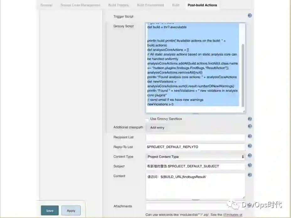 下面这个截图配置JOB邮件发送的Groovy脚本。
