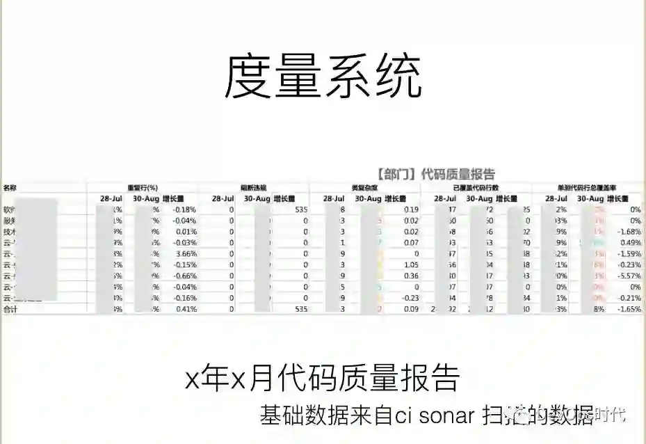 最后,我们会在度量系统里把这些数据收集起来,比如哪个部门哪个产品的,上个月和这个月的数据。