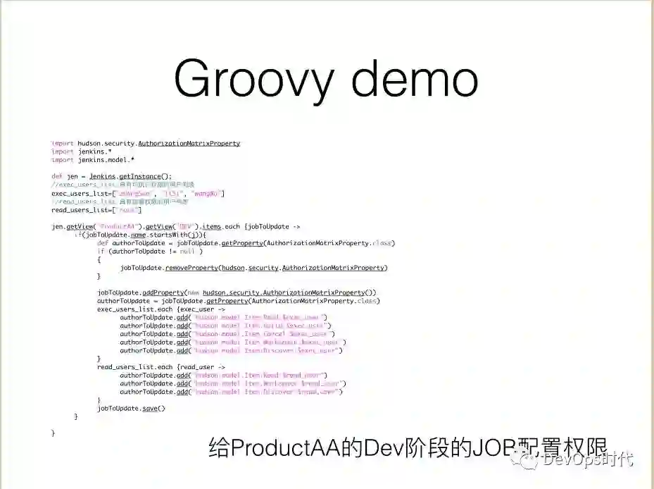 其实,这个例子不太好,也可以通过 JOB-DSL配置JOB权限,脚本的量会更少。