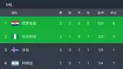 话说回来,明早(6月27日)2点,梅西所在的阿根廷将会迎来D组最后一轮小组赛的对手,尼日利亚。此前,阿根廷首轮战平冰岛,次轮输给克罗地亚,目前只积1分,排名倒数第一。