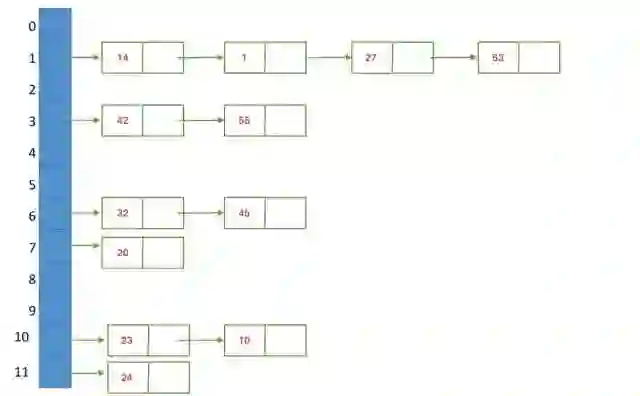 简单来说就是 数组 + 链表 。将键通过hash函数映射为大小为M的数组的下标索引,数组的每一个元素指向一个链表,链表中的每一个结点存储着hash出来的索引值为结点下标的键值对。
