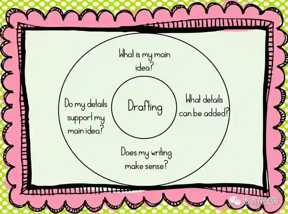 初期引导的关键在于Pre-writing(写之前的头脑风暴)和Drafting(打草稿),很多孩子反映没东西写,问题就是出在这两部分身上。