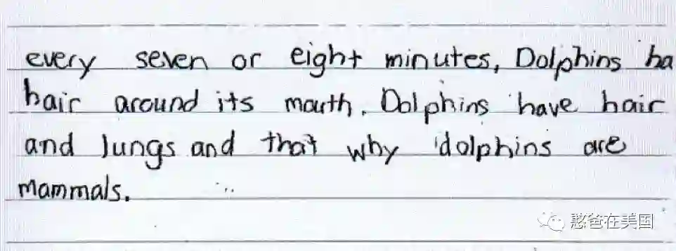 我们用憨憨学校二年级布置的一个作业来举个例子,这个作业是关于海豚的,要求孩子写一份关于海豚的科学研究报告出来。