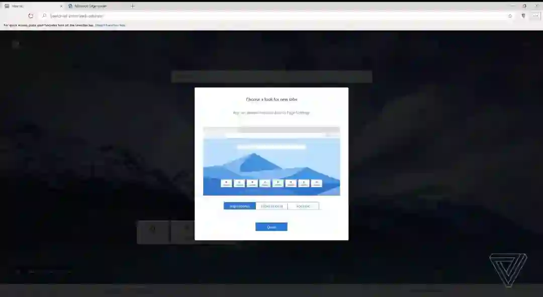 新标签页的显示有了全新的模式,对 Chrome 和 Edge 来说都是如此。新版 Edge 提供了像 “Inspirational” 的选项,看起是将山景作为页面背景。另外还有两个传统的选项 “information” 和 “focus” 可以选择。