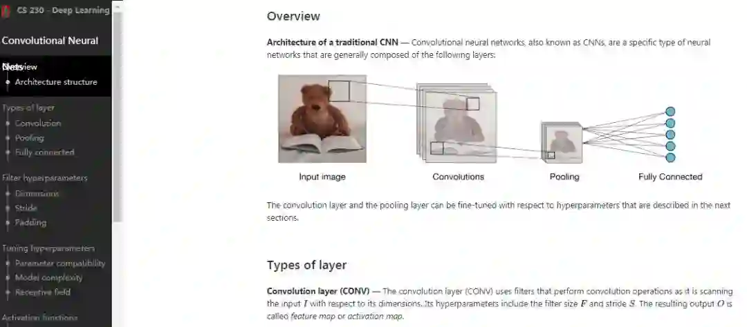 本文主要介绍这份总结的第一部分,即CNN部分的内容,后两部分RNN、窍门与技巧部分,读者可自行参看Github上放出的资源: