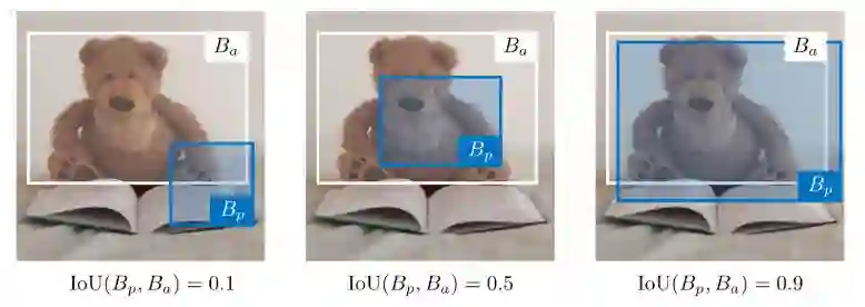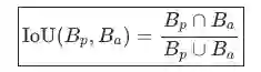 备注:IoU∈[0,1]。按照惯例,如果IoU(Bp,Ba)⩾0.5,预测边界框Bp被认为是合理的。
