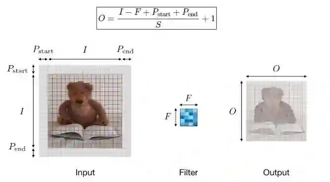 卷积层中的超参数兼容性:记输入量长度为I,过滤器长度为F,补零数量为P,Stride量为S,则该维度下特征映射的输出大小O可用下式表示: