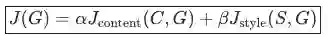 总成本函数的定义是内容和风格成本函数的组合,由参数α, β加权,如下所示: