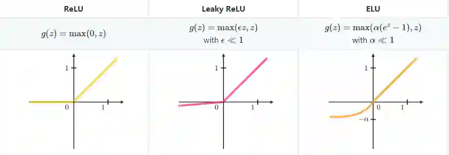 整流线性单元 : 整流线性单元层(ReLU)是激活函数g,作用于所有元素。它旨在为网络引入非线性特征,其变量总结在下图中: