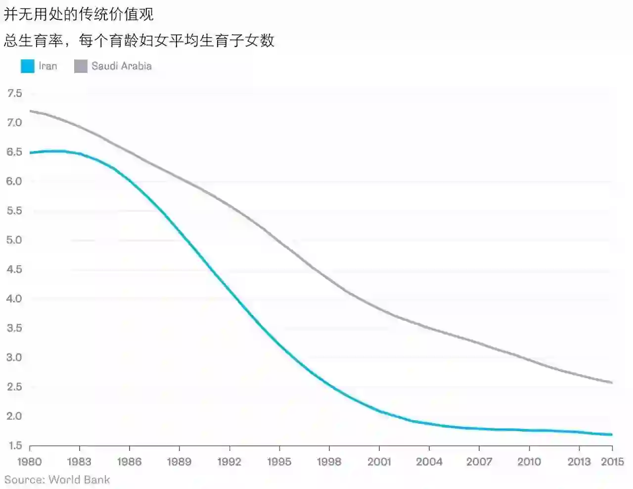 有例为证,1979年建立了神权政府的伊朗开始大力推行传统价值观,但该国生育率目前处于人口置换率之下。同样严格践行宗教律法的沙特阿拉伯,其生育率也在大幅下滑: