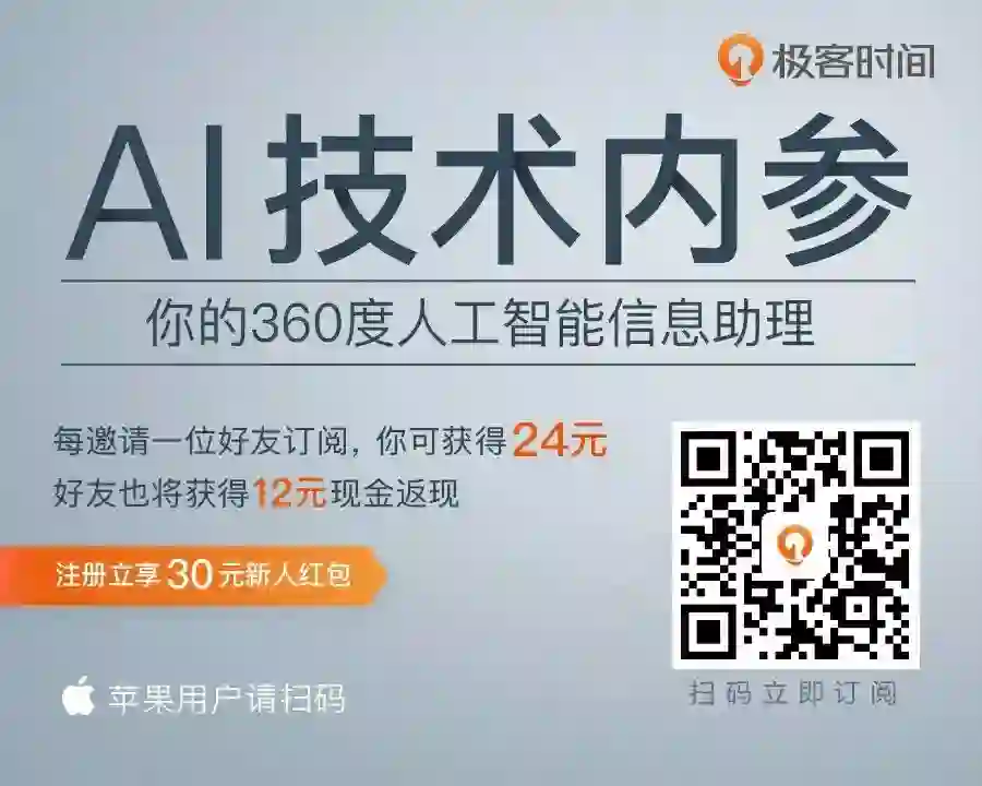 福利二:每邀请一位好友购买,你可获得 24 元现金返现,好友可得 12 元现金返现,多邀多得,上不封顶,立即提现(提现流程:极客时间服务号 - 我的 - 现金奖励提现)