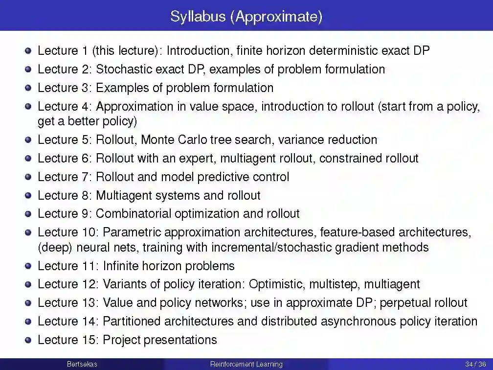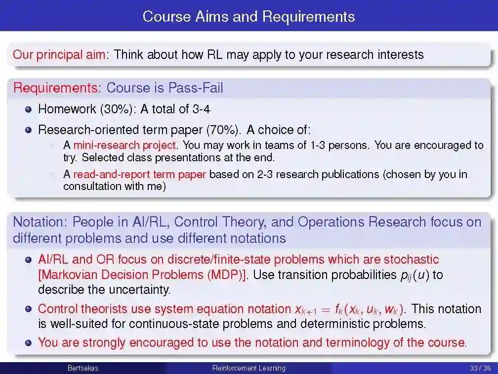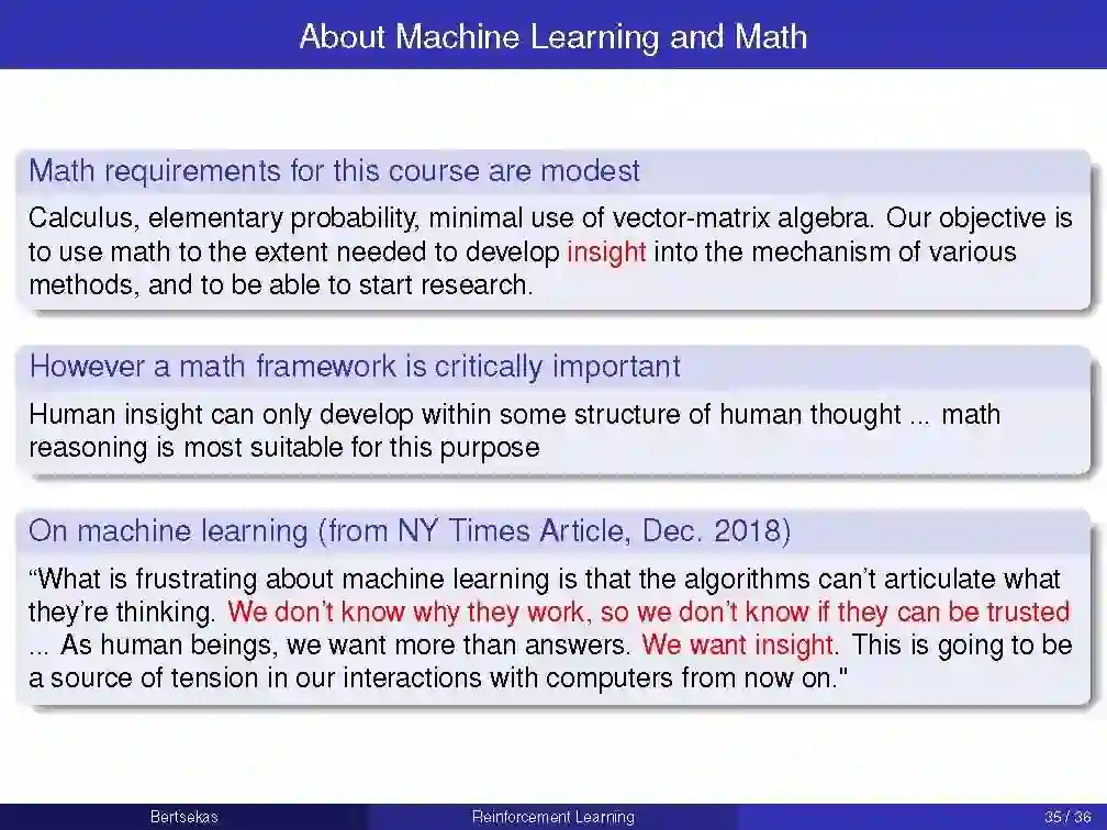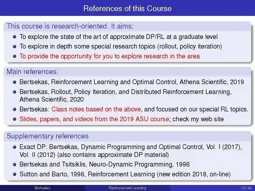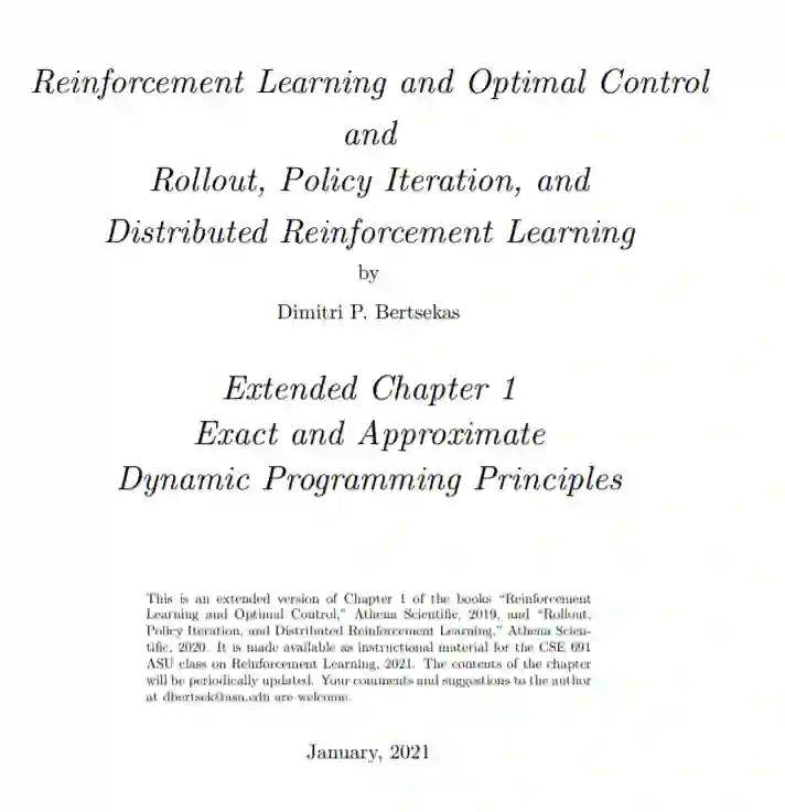 【导读】MIT科学家Dimitri P. Bertsekas在ASU开设了2021《强化学习》课程,讲述了强化学习一系列主题。Dimitri 的专著《强化学习与最优控制》,是一本探讨人工智能与最优控制的共同边界的著作。
