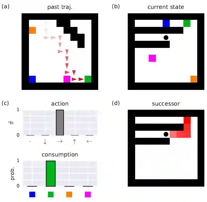 章节 3.2 中,我们展示了 ToMnet 学习推理算法智能体的目标(有效完成了 few-shot 逆强化学习),以及它们如何平衡成本与奖励。