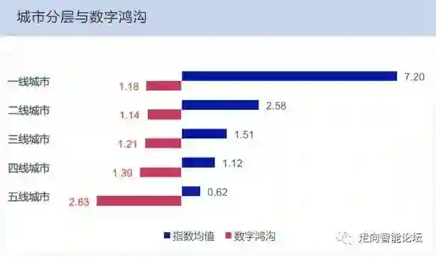 数字化先行城市和数字后线城市发展阶段不同。数字一、二线城市的数字化过程已经深层次地进入到产业领域,而在后线城市,数字化应用场景仍然停留在高频刚需的政务服务和文化生活等领域。