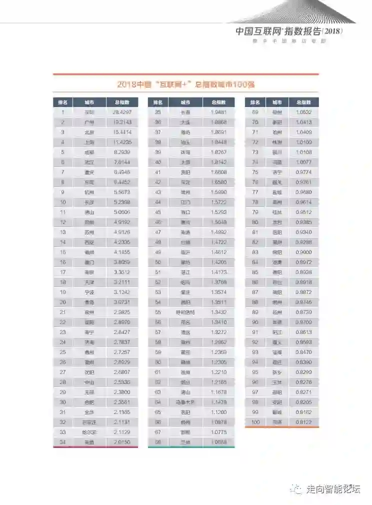 在“走向智能论坛”微信公众号回复“20180413”,可免费下载“腾讯研究院:中国互联网+指数报告2018”PDF全文