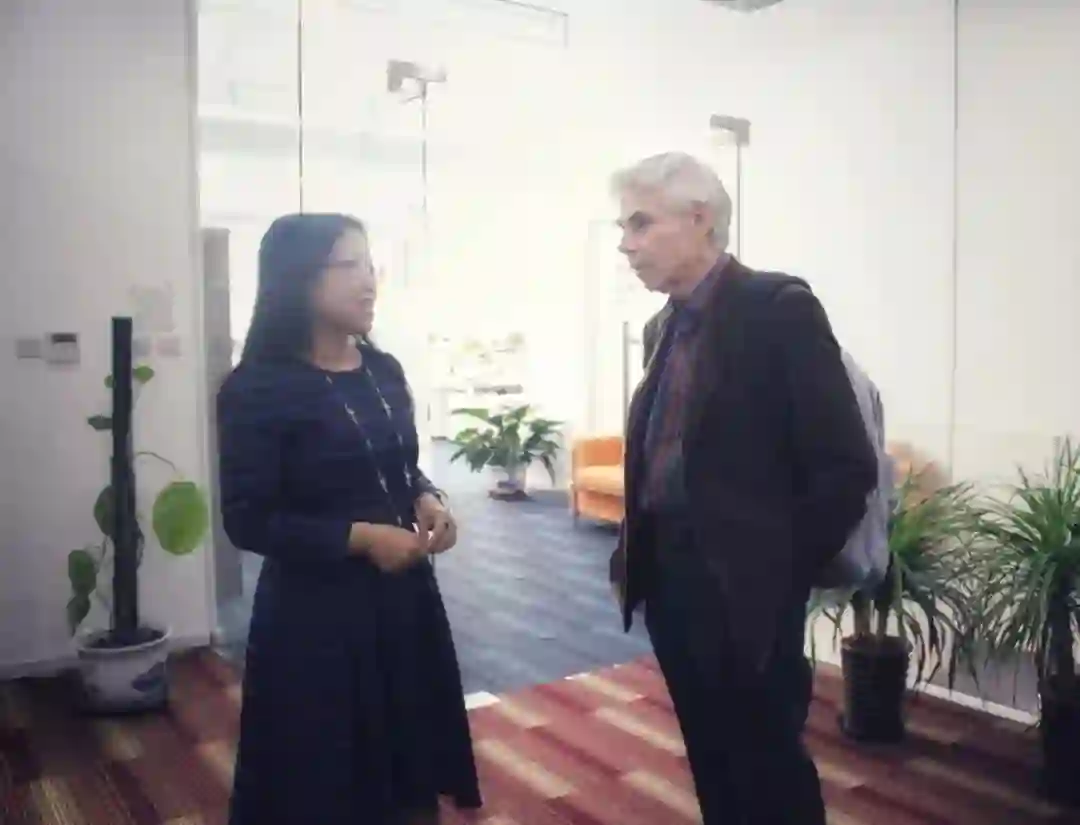4 月 17 日上午,侯世达教授莅临湛庐思想空间,与湛庐文化创始人韩焱女士进行了愉快的交流,就此开启了此次 2018 北京行的第一站旅程。在接下来的几场活动中,韩焱女士作为侯世达新书《表象与本质》的出版人和致辞嘉宾,为大家分享了侯世达教授此次北京行背后的故事,同时阐述了她对侯世达教授两部作品重要价值的新思考。
