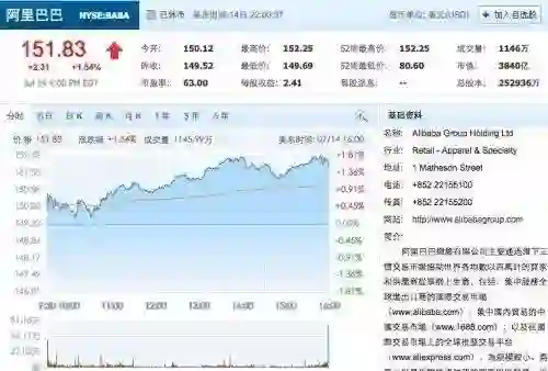 阿里股价涨破 150 美元:成亚洲第一