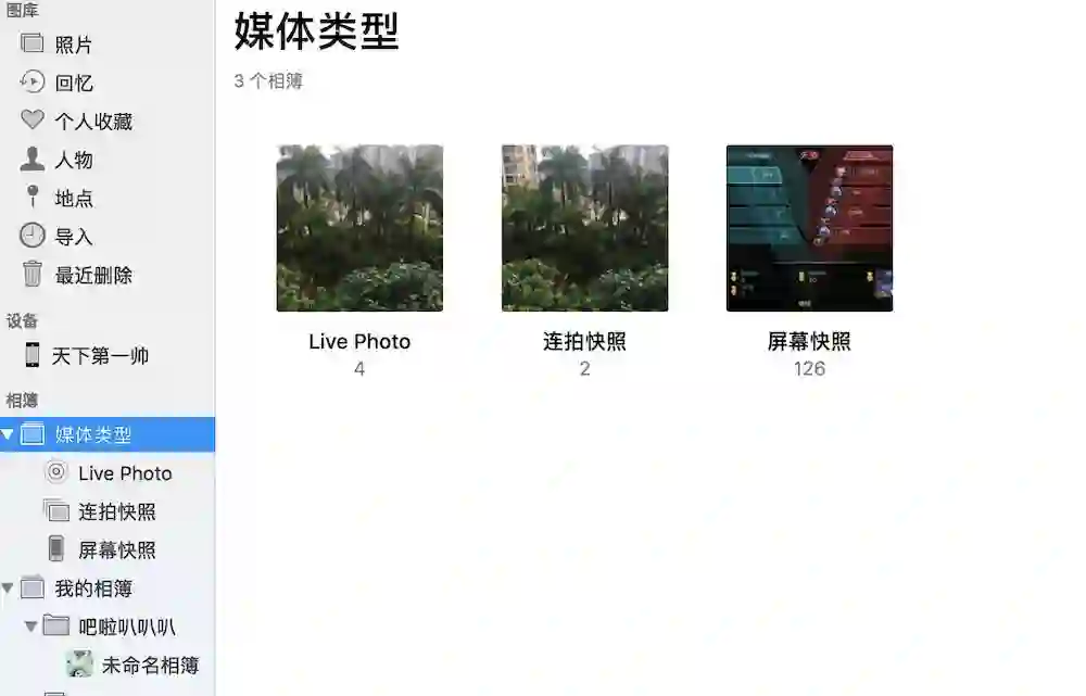 媒体类型相册支持用户将自己的媒体文件分成自拍、live photo、全景照片、景深照片和连拍等多个类型。导入面板将以时间顺序显示用户最近导入的媒体文件,还有日期和时间。