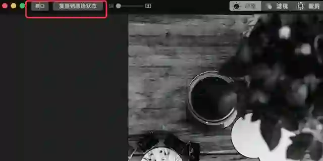 另外,大家容易忽略的是编辑界面的左上角,此处有两个重要的功能:前后效果对比和一键复原到原始状态。按住第一个小图标可以回看原件照片效果,进行快速对比;点击复原照片则直接恢复到原始状态。