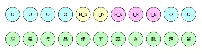 比如“蒜香味”在模型的 CRF 分支预测出是实体,标签对应 "B"、"I"、"I";接下要解析这个实体属于哪个类别,在 Dense 分支预测的结果可能会有四种